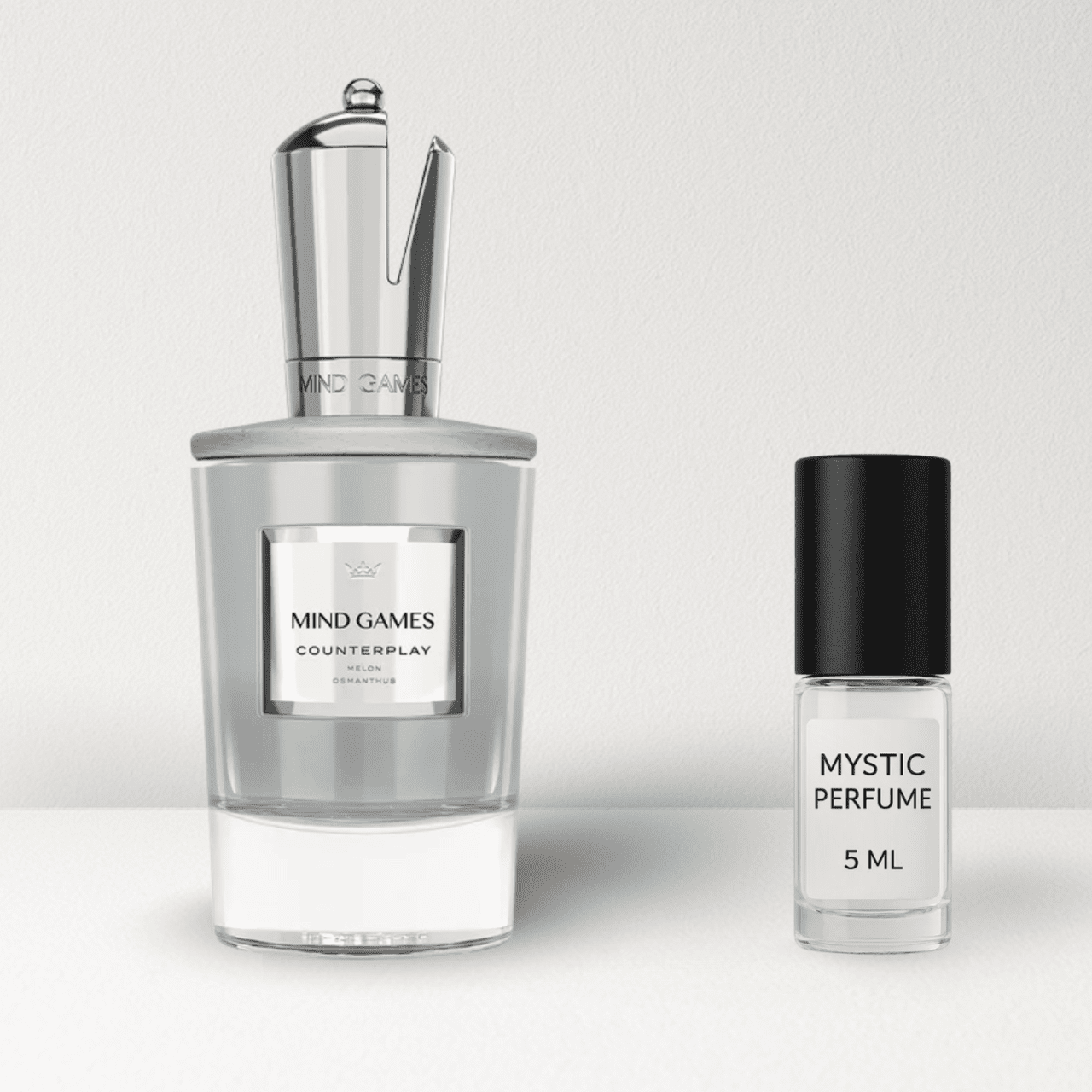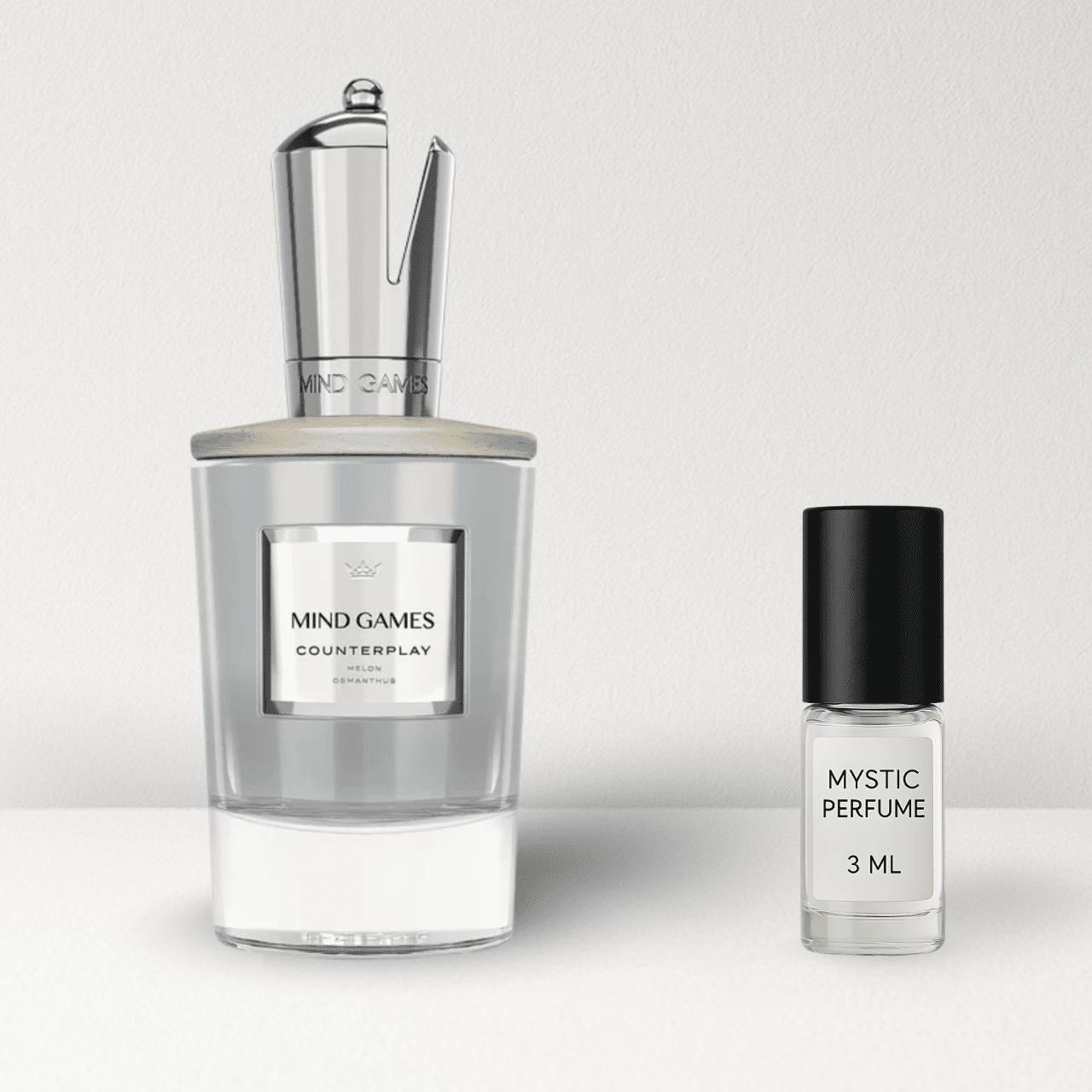 Counterplay by Mind Games is a woody fruity floral fragrance inspired by the juicy brightness of a perfectly ripe cantaloupe on a sunlit summer afternoon. Bursting with melon, guava, and banana, the scent evolves into a velvety heart of osmanthus, ylang-ylang, and orange blossom, before drying down into a smooth and modern base of sandalwood, patchouli, and a dash of pink pepper.